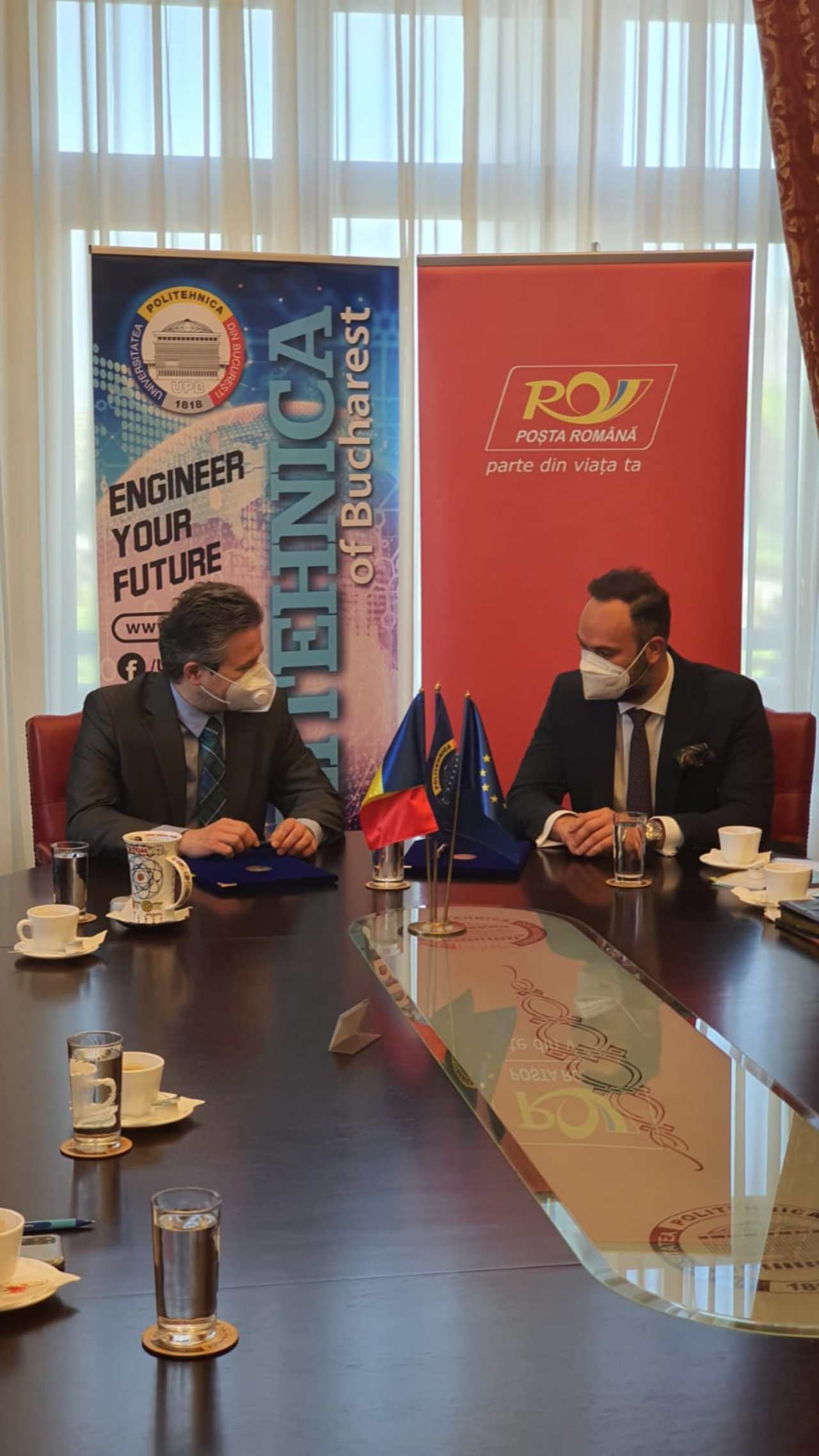 Bucureşti, 12 mai 2021 – Compania Naţională Poşta Română a încheiat astăzi un acord de colaborare cu Universitatea Politehnică din Bucureşti. Prevederile acordului vizează dezvoltarea şi derularea unor proiecte de cercetare ştiinţifică, inovare şi dezvoltare tehnologică cu ajutorul specialiştilor din cadrul Universităţii. Implementarea proiectelor va contribui la modernizarea şi digitalizarea companiei, cât şi la perfecţionarea continuă a resursei umane, obiective incluse în procesul investiţional demarat în 2020.