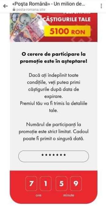Astfel, Compania Națională Poșta Română recomandă celor care primesc astfel de mesaje care promit diverse recompense, să nu dea curs invitației de participare la promoție/ concurs.