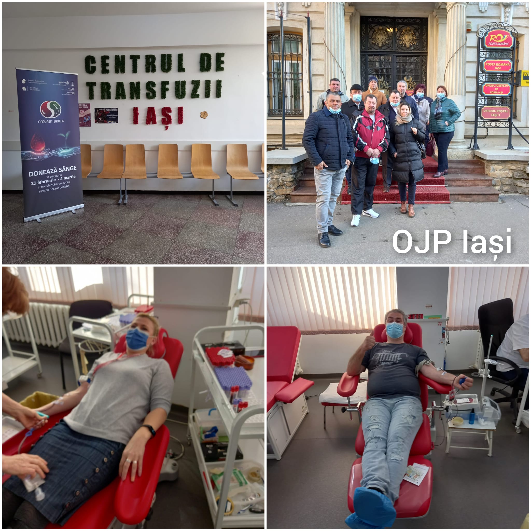 București, 26 februarie 2022 – Campania “Donează parte din viața ta!” a continuat, ieri, în județele: Harghita, Satu Mare, Vaslui, Suceava, Botoșani, Bacău, Neamț, Iași și Sibiu. La centrele județene de transfuzie sanguină, o sută de poștași voluntari au donat, în total, 45 de litri de sânge, în cadrul campaniei.