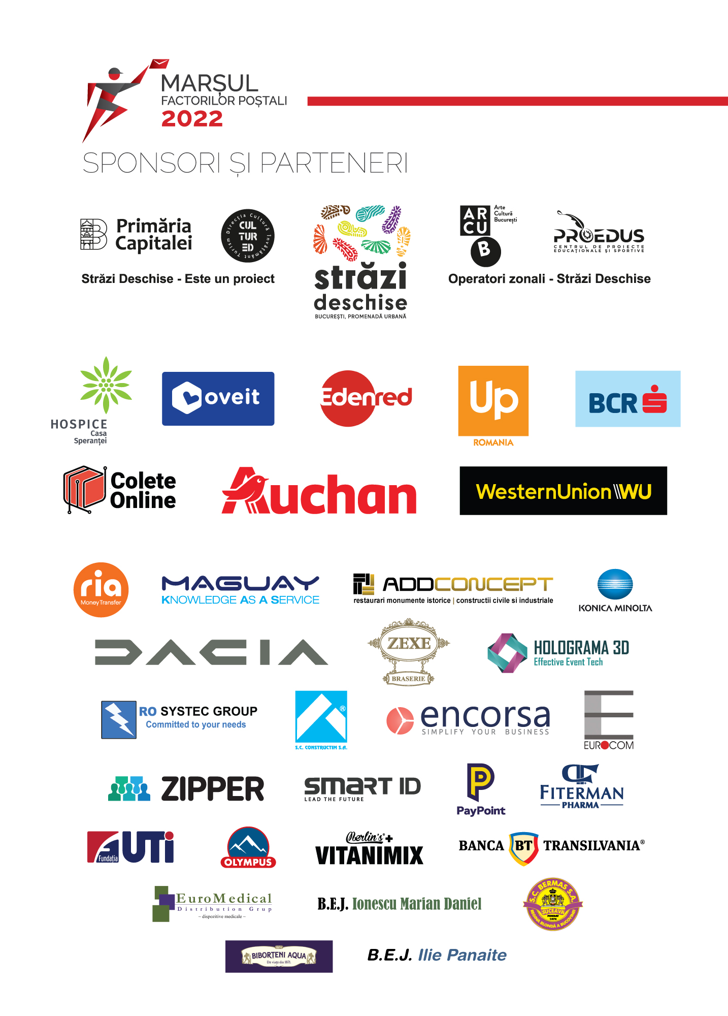 Anul acesta, ajunsă la cea de-a 42-a ediție, competiția a fost organizată cu sprijinul partenerilor noștri: Muzeul Național de Istorie a României, HOSPICE Casa Speranței, Primăria Municipiului București, ARCUB, PROEDUS, Edenred, Up România, BCR, Colete Online, Auchan, Western Union, RIA Money Transfer, MAGUAY, ADDCONCEPT, Konica Minolta, Dacia, Zexe Braserie, Holograma 3D, Systec, Constructim, Encorsa, Eurocom, Zipper, Smart ID, PayPoint, Fiterman Pharma, UTI, Olympus, Vitanimix, Banca Transilvania, EuroMedical, Bermas Suceava, Biborțeni și Fundația AEF.