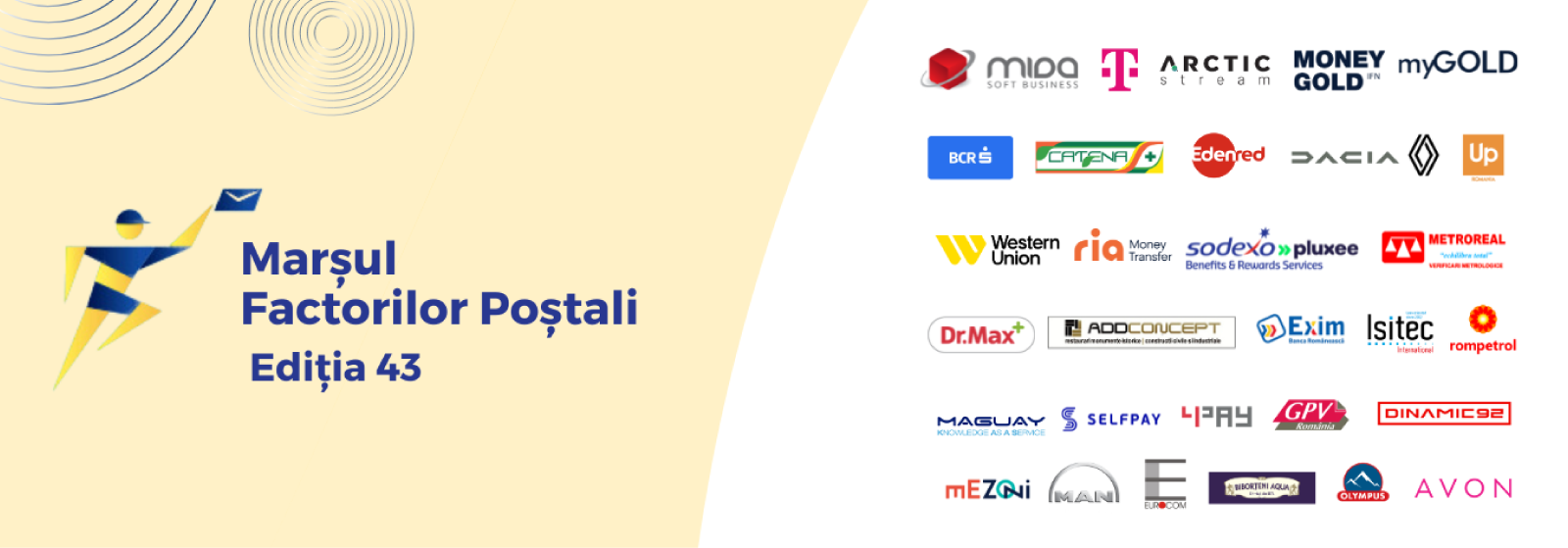 Sponsorii etapei naționale ai Marșului Factorilor Poștali sunt: Mida Soft Business, Telekom, Arctic Stream, MoneyGold, BCR, Catena, Edenred, Dacia, Renault România, Up Romania, Western Union, RIA, Sodexo Benefits and Rewards Services Romania, Metroreal Craiova, Add Concept, Exim Bank, Dr. Max, Isitec International, Rompetrol, Maguay, SelfPay, 4Pay System, GPV, Dinamic 92 Distribution, Alcam International, MAN, Eurocom, Biborțeni, Olympus, Omniasig, La Fantana, Avon.