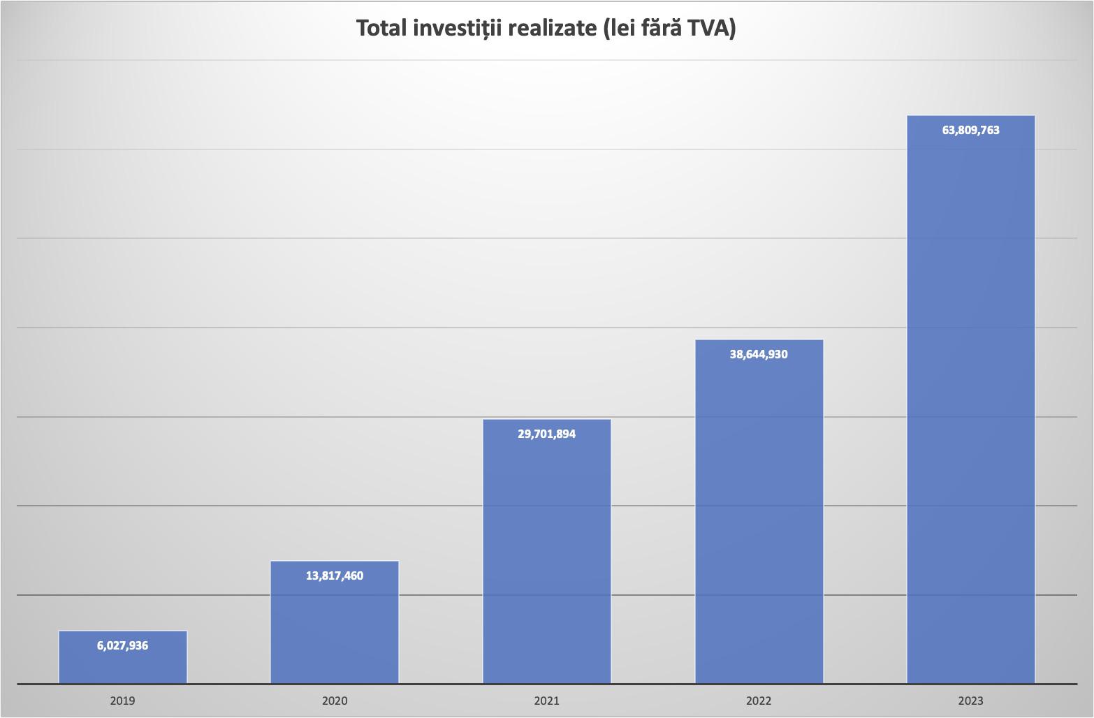 Investițiile derulate și realizate sunt redate în graficul din anexa 1. Acestea și alte măsuri manageriale în curs au condus la o creștere istorică a cifrei de afaceri conform Anexei 2.
