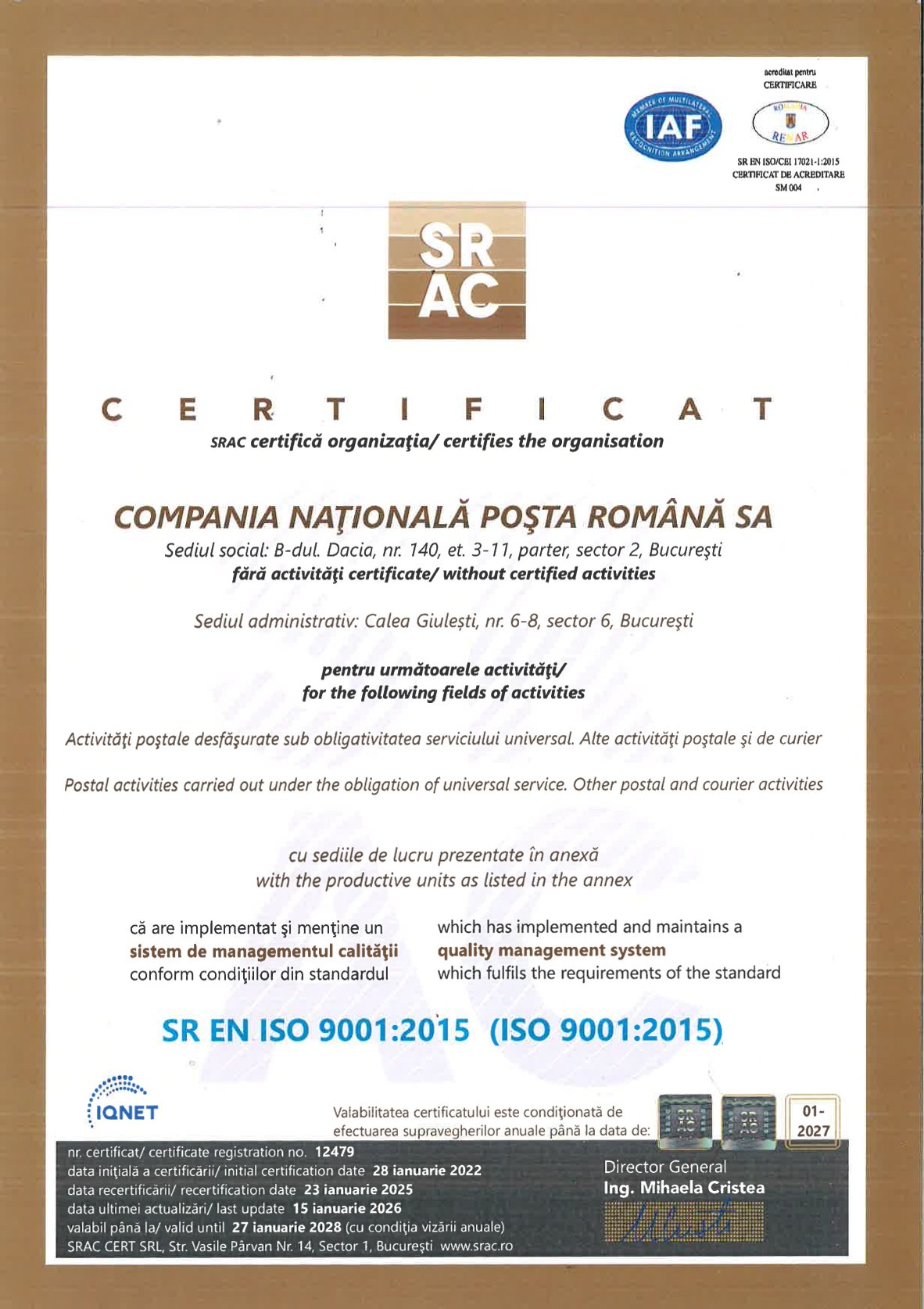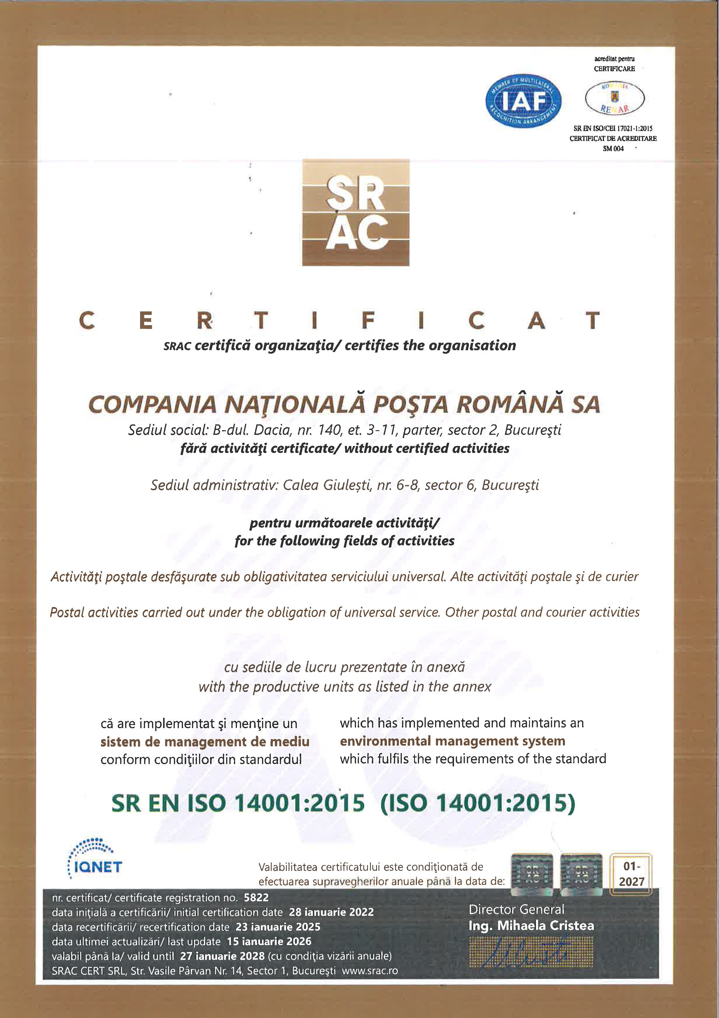 Certificări ISO Calitate |